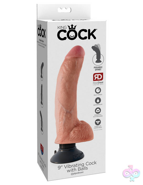 King Cock Vibrator – King Cock 9-inch Vibrator With Balls – Skin Color by Pipedream