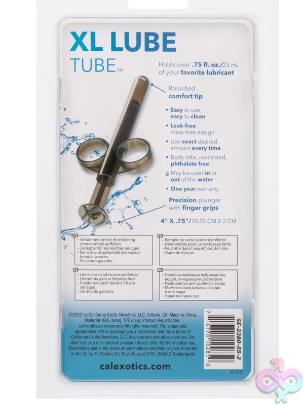 A sexy size of 4″ X .75″ (10.25 cm X 2 cm), the Large Smoke-colored Lubricant Tube is ideal for intimate use. Its precision plunger is fitted with finger grips, making it an absolute delight to use as you navigate your sensual journey. This is a must-have accessory that instantly adds comfort and pleasure to any intimate endeavor.